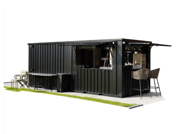 Investissez dans le Conteneur Bar Extérieur Amovible 8 x 2 mètres (26ft) et profitez d’une solution pratique et esthétique qui répondra à toutes vos attentes en matière de bar extérieur.