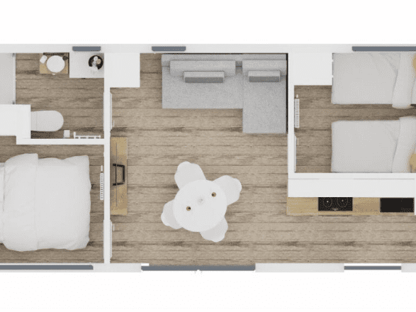 Le Conteneur Habitable T2 de 48m² est conçu pour offrir un espace de vie confortable et fonctionnel. Avec une isolation efficace en laine de roche et des murs intérieurs résistants à l’humidité, ce conteneur est idéal pour une habitation durable.
